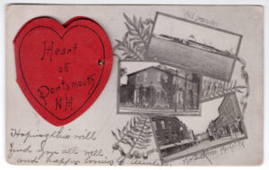 For the record, Portsmouth was not the only attractive city featured among a series of copyrighted cards produced by the Glazier Art Co. of Boston. A little onlines sleuthing shows nearly identical postcards from Nashua, NH and from Massachusetts’ locations like Amebsury, Nantucket, Chatham, Cape Ann, Plymouth, Boston. Company workers also assembled “Heart of” penny postcards for Utica, NY, Bardstown, KY, and Millersville and Tunkhannock, PA. They were distributed by the Samuel Ward Company that also specialized in hotel guest books, diaries, scrapbooks, and the ever popular “five year line-a-day book.”