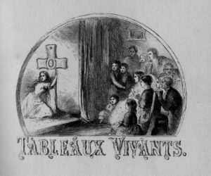 A successful tableaux company, Head wrote, should include 40 people with at least “six young ladies of good form and features.” After selecting a series of scenes, the stage manager had to locate the necessary props, scenery, furniture, and wardrobe. Musical selections needed to match the tone and message of each scene. There was a lot of prep and rehearsal before each show.
