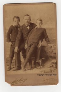 Hermann, on the right, is the blonde in the photograph. His father, Samuel had been wounded in the Civil War. The dark-haired brother, Borland, is mentioned in the journal entry and went on to become a merchant marine. Hermann, the youngest of six, later went to Harvard where he studied architecture. He married Helen, valedictorian of her high school class, who attended art school. Here, from his journal, is Hermann’s day.