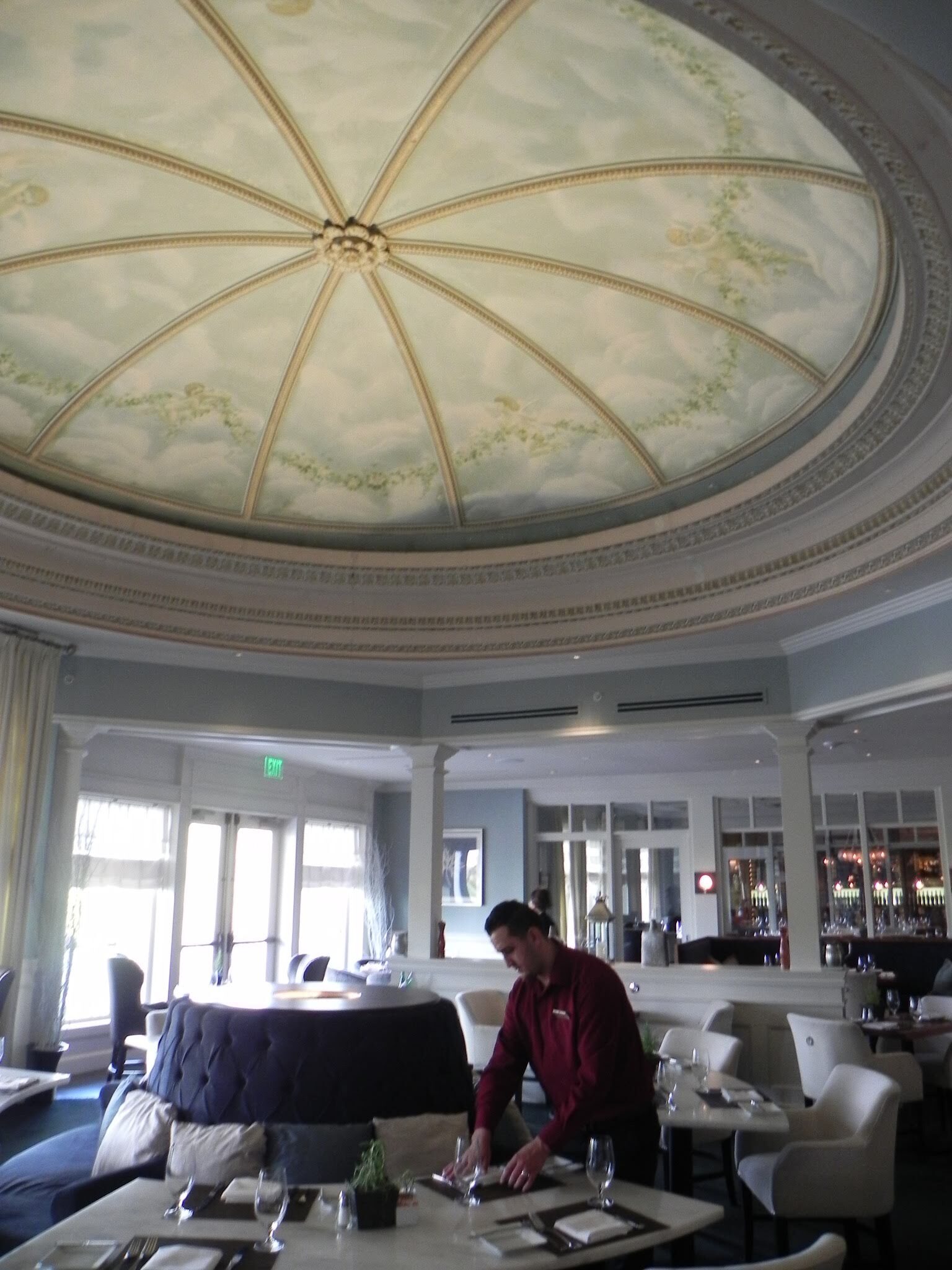 By the say, be careful where you sit in the dining room. The dome has strange acoustic properties. A whisper from the right spot can be clearly broadcast to a distant table.