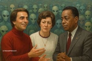 Sagan’s first question was more like a lecture on the slow process of evolution by natural selection. Scientists would assume, he said, that beings who had evolved on a distant planet in a very different environment over eons would look very different from humans from earth, he explained. And yet, Sagan noted, the Hills had been taken aboard a “supposed extraterrestrial vehicle” by humanoid beings with heads, hands, two eyes, nose, arms, legs, and feet. They were wearing clothes, according to the Hills’ hypnosis tapes, even hats. The mathematical possibility of such a coincidence was beyond calculation, Sagan said. There was an “intrinsic implausibility” about the whole story.