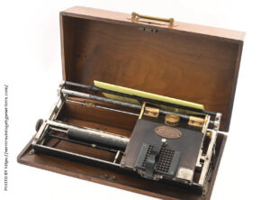 Despite her glowing review, she backed the wrong horse. Her model was technically an “index” machine that used adjustable rotating wheels that combined to locate letters of the alphabet, much like an early calculator. When the letter was set, the operator struck the hammer to print a single letter, then reset the machine. The index machine offered interchangeable fonts at just one dollar each. But it was slow and soon faded as the familiar typewriter, with a key representing each letter of the alphabet, dominated the marketplace.