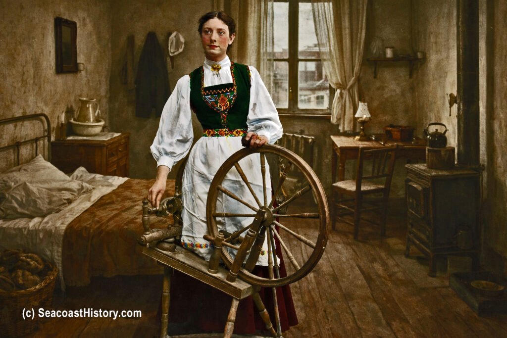 Assuming it is accurate and not highly fictionalized, Celia’s poem reveals much about Karen’s state of mind. Celia describes her as depressed, homesick and sullen. She is not pretty and not young, the poet says bluntly. As Karen runs her spinning wheel, we learn that she had thin hands. She owned a blue dress with a snow white collar.