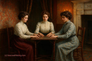 “I see a misty something,” the medium whispered, “moving slowly about over the rug.” Celia, Annie, and Sarah leaned in closer to catch the medium’s every word.