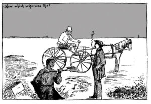 In one Hamlet-like scene, pictured here in an illustration from the book, Albee bumped into a “decrepit” gentleman sitting in a wagon. The old guy had hired a gravedigger to exhume his three wives and move their bodies to a central spot, so he could be buried beside them all. Eventually, the digger stopped to announce that he had struck the coffin. He explained in gross detail how the longevity of the remains were related to the weight of the deceased. “When a man gits down to the bone afore he dies,” the digger said to the gaunt old man, “he has a good chance of staying pretty much so.”