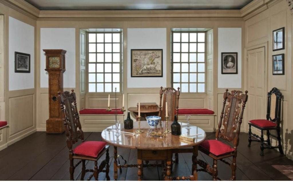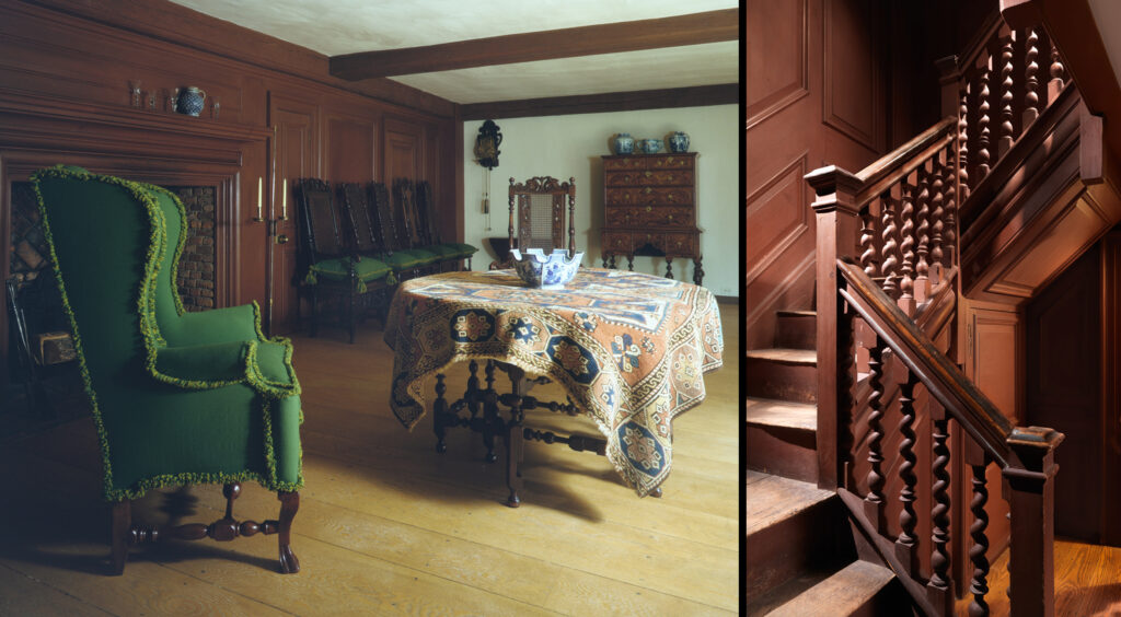 You’ll find “The Wentworth Room” (Gallery 711) in the American Wing of the museum. But there’s more. Since the museum had limited space, in 1929 the Met sold some of the panelling and architectural beams to antiques collector Henry Francis du Pont. The collector’s Delaware mansion, opened as the Winterthur Museum in 1951, now houses 175 period room displays–including more pieces of the old Wentworth home– plus 85,000 American decorative artifacts.