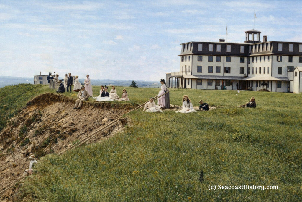 “The natural advantages, the location of this Hotel, is unsurpassed. Situated on the promontory, known as [Great] Boar’s Head, 65 feet above the level of the sea, within a short distance of the fishing grounds, for which this coast has always been so noted. A Post office and Telegraph office are in the house; Billiard and Bowling Saloons are of the newest available and with its old and popular proprietor, L. P. Nudd, we feel assured that its former reputation will be kept up.