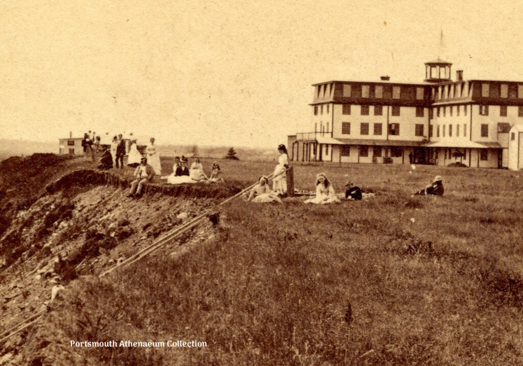 Here’s what an 1871 guide to the region had to say: “As a summer resort, Hampton ranks among the first on the North Shore, its bold rocky coast and splendid sea view, comprising a range from Cape Ann to Portsmouth, including the Isle of Shoals, cannot be surpassed. Several large hotels are near the beach, prominent among them being the “Boar’s Head Hotel,” situated upon a jagged promontory bearing a not very poetic name of Boar’s Head, whether from real or fancied resemblance to the object from whence the name is derived, we know not.
