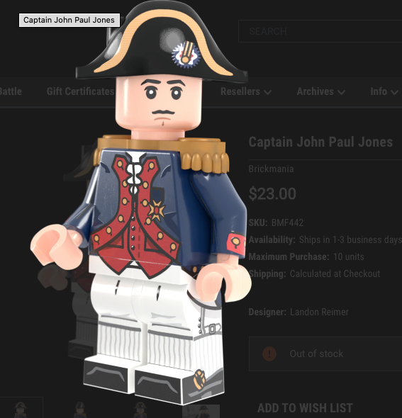 Scholars gasp when I say I use eBay to study history. Little can be learned, I’m told, from commemorative Coke cans, lamp shades, and cigar boxes. I respectfully disagree. There is a wealth of information buried within this rubbish heap of cultural debris. We learn, by its sheer volume, for example, how famous Jones has been for more than two centuries. Despised as a pirate, a terrorist, and a traitor by the British, he became an instant icon in a brand new nation that was desperate for heroes. By defeating a British ship within sight of the British coastline, Jones symbolized the spirit of the upstart American Revolution. By taking on the world’s largest navy with a single American-made ship, Jones became, in my opinion, one of the nation’s first action figures. He predates the American cowboy, GI Joe, John Wayne, Rambo, even Superman. Jones created his own military outfit, had a secret identity, seemed invulnerable to flying bullets, circled the globe, and was a loner.