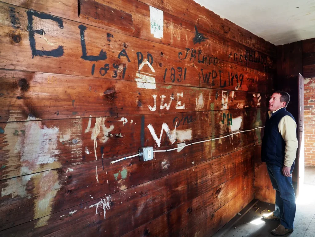 Among those unique details is the wall of an old barn where, for decades, children long gone to dust left their mark. “We were here,” they said. “Don’t forget us.”