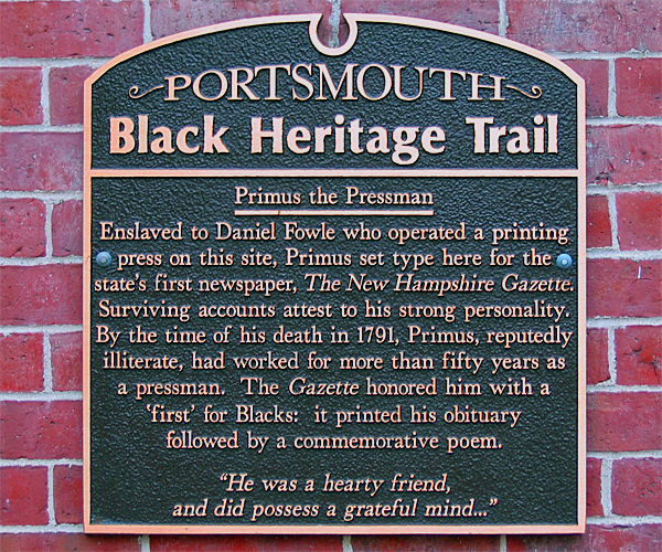 In the summer of 1756 Daniel brought his press, his wife Lydia, and his right-hand man Primus to Portsmouth, where, on October 7, 1756 he printed the first New Hampshire Gazette, the state’s first newspaper. Lydia died five years later, at 36. She had lost her two children as infants, and suffered a miscarriage during the stressful Monster of Monsters incident.