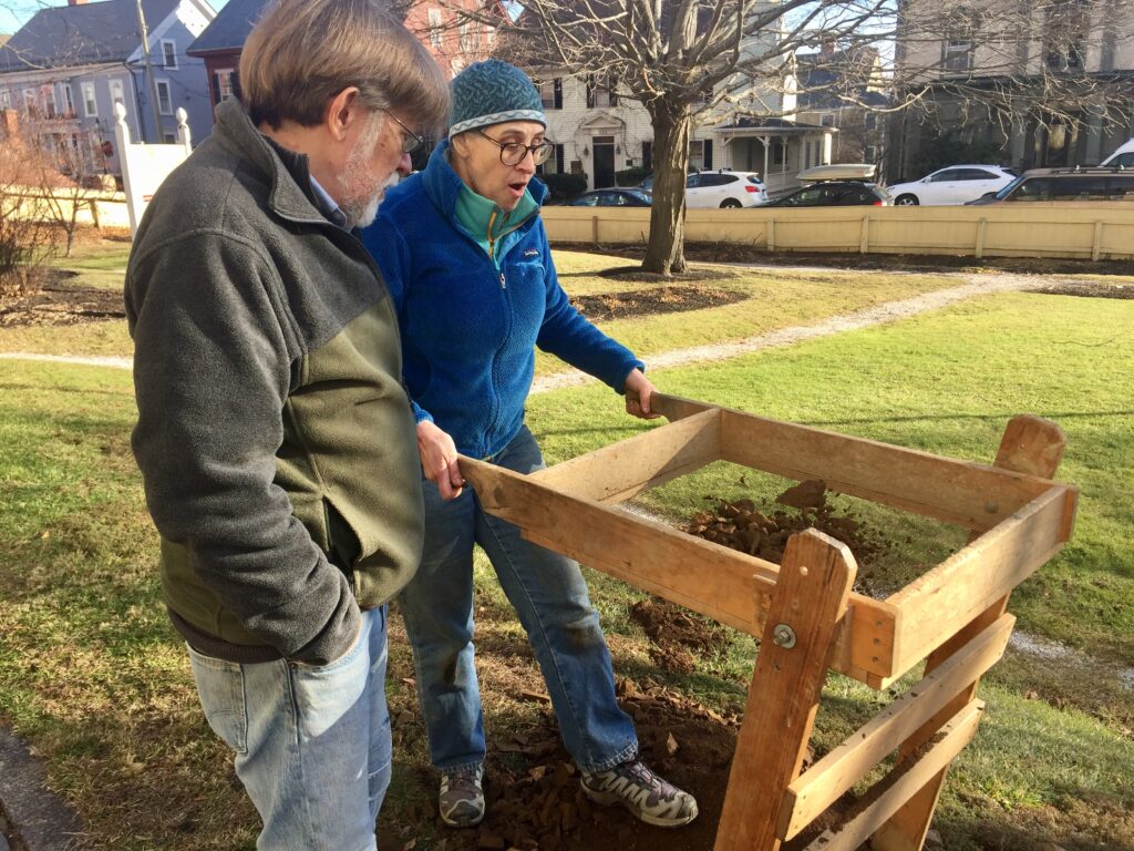 On a cold day last fall the diggers dumped buckets of “fill” excavated from the trench into a hand sifter. Shaking the wooden frame with both hands, Pinello sifted the soil through a thin wire mesh, scanning for artifacts with a practiced eye. As expected, the research turned up everything from shards of dishes from the 1700s to modern nails, crushed stone and bits of 20th century plastic. Unlike Hollywood archaeologists in search of zombie mummies and the Ark of the Covenant, Pinello is satisfied with humbler finds.