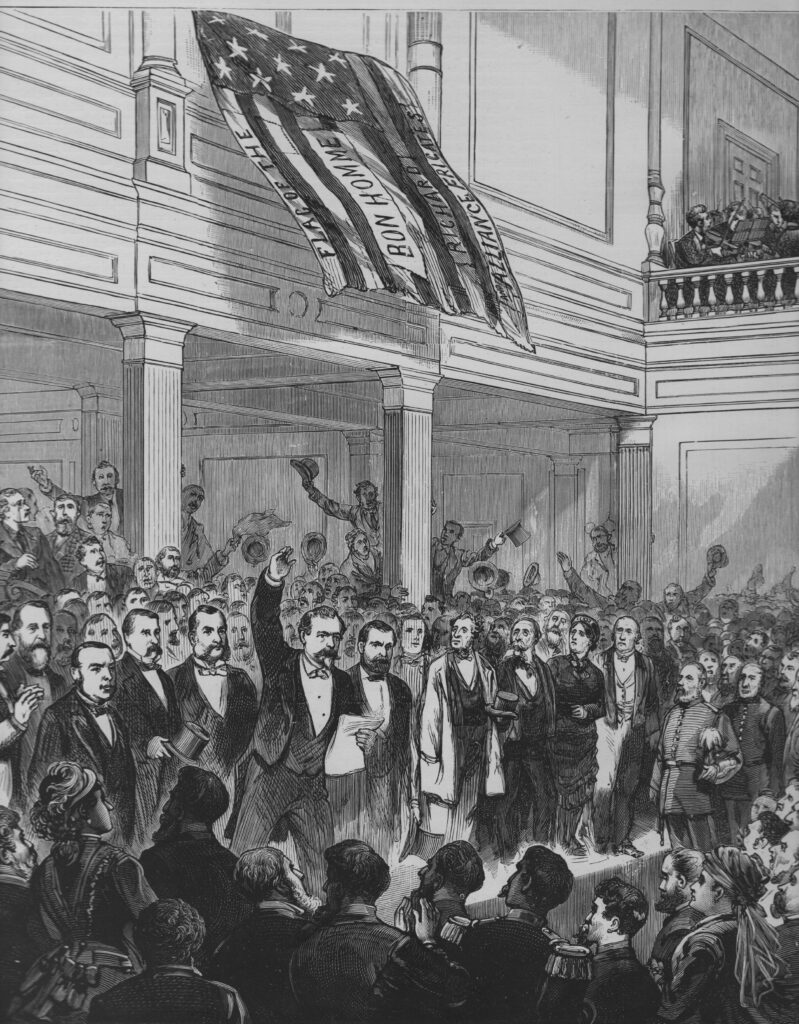 The more history one consumes, the more connections appear. Last week, for example, I bumped into an illustration from a 1876 edition of Frank Leslie’s Illustrated Newspaper. It shows dozens of formally dressed men – and three women – celebrating in a great hall. Above them, an orchestra is playing and a flag is being unfurled. The big event was the closing ceremonies of the 1876 Bicentennial Exposition at Philadelphia. The flag, according to the caption, once flew above the Bonhomme Richard under Capt. John Paul Jones, who twice lived here in Portsmouth.