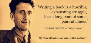 Orwell (his real name was Eric Blair) supported his fiction by writing essays. He sold the same article as often as 20 times to different publications in order to eke out a living. He also worked in a grocery store and a bookstore. He was a correspondent in the Spanish Civil War and was shot through the neck by a sniper. He died of tuberculosis at age 46. He produced nine books and his essays are his best work. They are why I write the way I do.