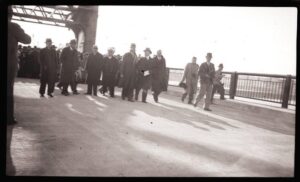 Ghostly figures at the dedication of the Sarah Mildred Long Bridge connection Portsmouth, NH to Kittery, ME in 1940. Courtesy Portsmouth Athenaeum Collection.