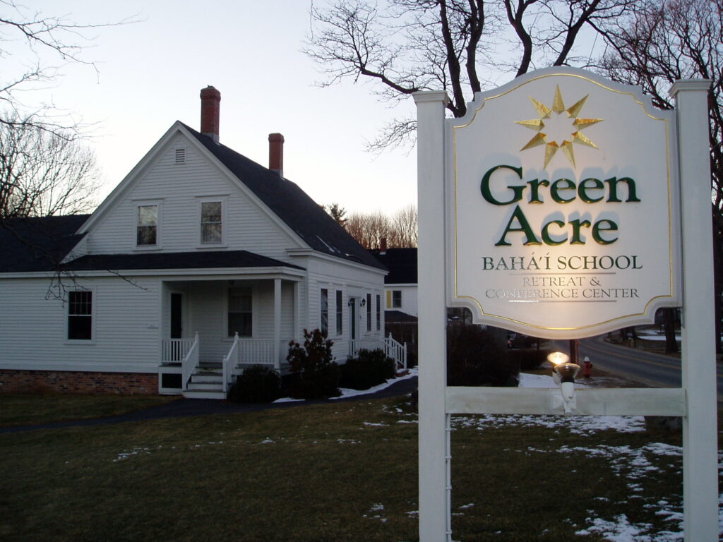 In 1890, Sarah Jane Farmer signed on with four others to open a restful summer resort on a knoll high above the Piscataqua River in Eliot, Maine. The popular poet John Greenleaf Whittier was the first to sign the guest book of the Eliot Inn. It was Whittier who suggested the name Green Acre to Sarah, the name the Baha’i school still bears today.