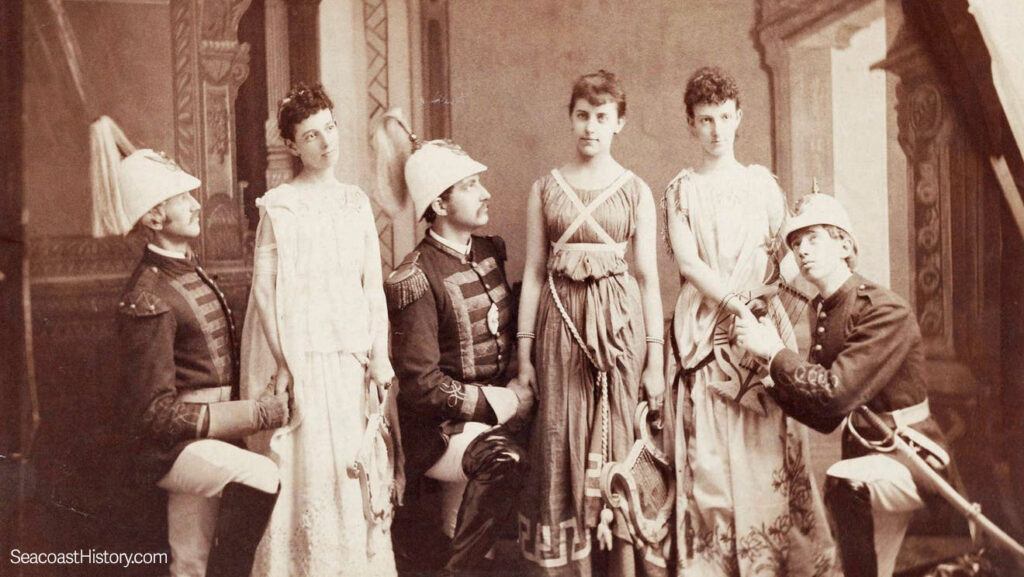 Regretting the brief two-night run, Hartford made a case for more shows featuring “home talent.” The Portsmouth Opera Company, he wrote, was “capable beyond the average amateur attempt to amuse and satisfy the critical audience which the best of Portsmouth society brings in attendance.” Hartford singled out the cast members seen in our photo for their stellar efforts. He was also making a bid for greater attendance at the theater he was managing and would soon own.