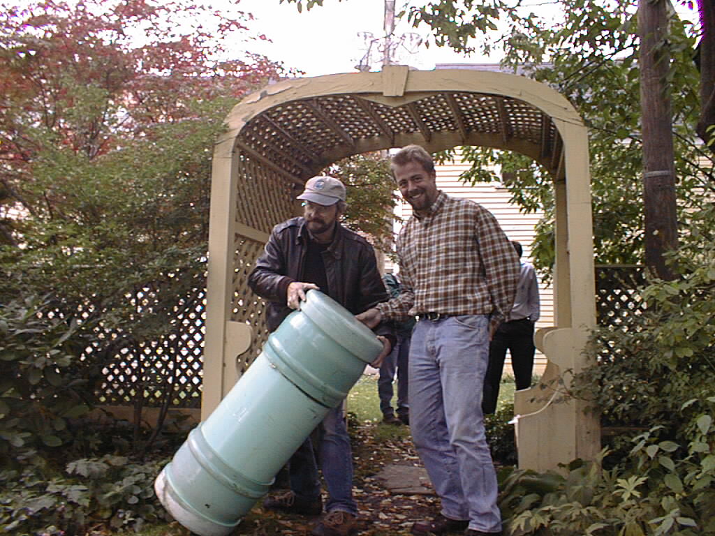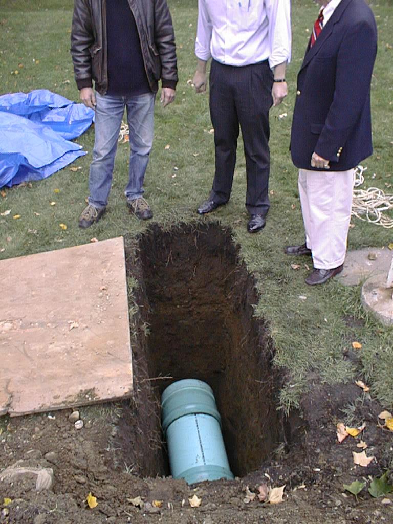 The big plastic pipe sits five feet under the front lawn at the Portsmouth Historical Society. Four of us lowered the thing with ropes into a grave-sized hole for the benefit of reporters.
