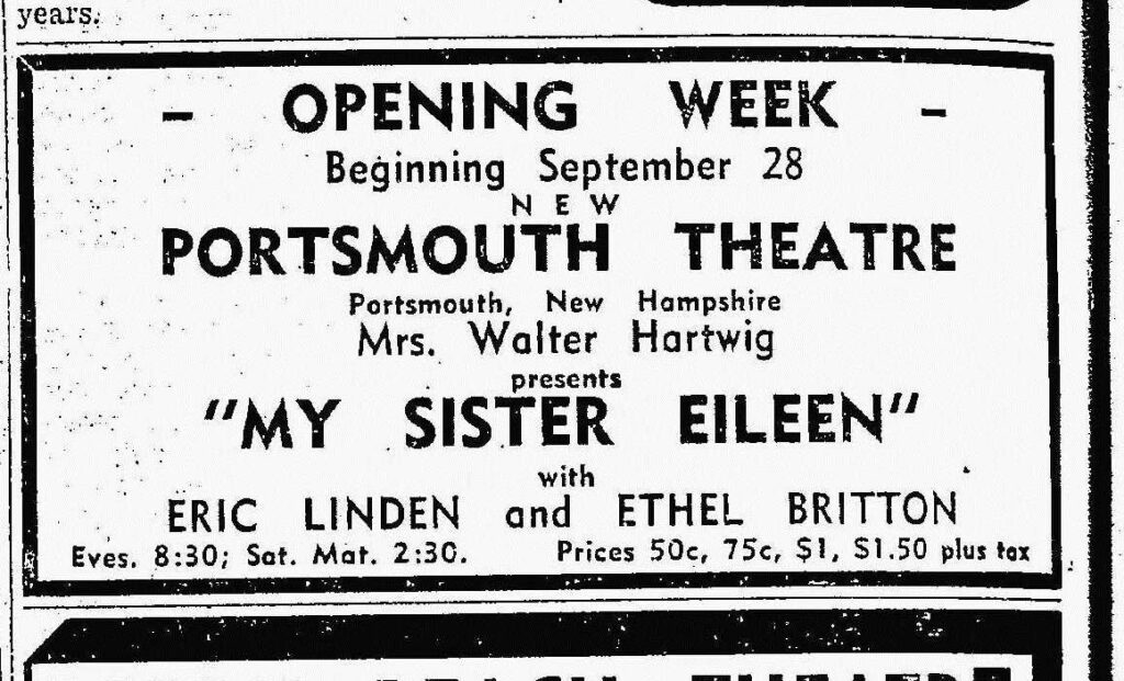 The Portsmouth theater revival was short-lived. Mrs. Hartwig’s advance team made a few improvements to The Music Hall stage. Then her New York City-based actors, veterans of the Ogunquit Playhouse, delivered four popular plays and quickly disappeared. By December, as Americans felt the impact of wartime food and gasoline rationing, Portsmouth merchants were grumbling to Justin Hartford. Mrs. Hartwig’s acting troupe, it seems, had left a variety of unpaid bills in their wake.
