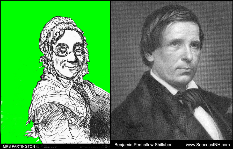 What Shillaber brought with him to Boston — his down-home memories of growing up in provincial Portsmouth, became the heart and soul of his comedy. His most enduring and witty character, Mrs. Ruth Partington, became the very symbol of a rising middle class searching for a code of manners to follow in a new world suddenly dominated by cities and technology. She was the country bumpkin in the city and when Mrs. Partington talked, America laughed.