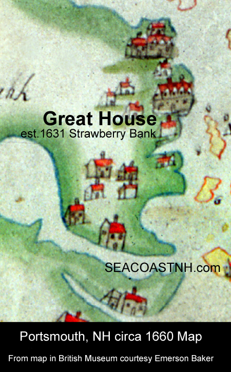 While Captain Neal was encamped at Pannaway, chasing pirates, and off searching for precious stones in the White Mountains, the first European structure was being built at Portsmouth, then called Strawberry Bank. Historians usually refer to this building as the “Great House,” but the term is confusing. By 1631, John Mason’s (the Laconia Company) men had taken possession of Thompson’s fishing operation and owned a successful new fur trading post at Newichwannick, now South Berwick, Maine.