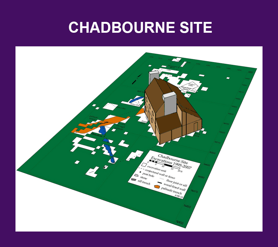 The term “great house,” confusing to modern readers, refers to any large manor house usually occupied by the reigning landlord in a highly class-conscious society. Important English families lived in big houses, although not huge by modern standards. Prof. Baker points, for example, to the foundation of the Gov. John Winthrop Great House discovered during excavations for Boston’s “Big Dig” in Charlestown, MA. Built in 1629 (and later expanded into a tavern) the original Winthrop manor was about 18 x 40 feet and is now visible in Charlestown City Square.