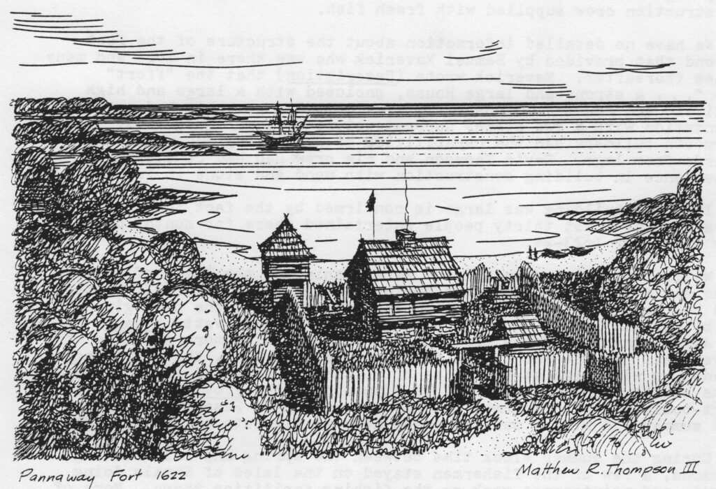 Neale, an English army officer, reportedly arrived with eight or ten ex-military adventurers aboard the bark Warwick in the spring or summer of 1630. As acting governor of New England, Neale had wide-ranging powers. He set up operations at Pannaway Manor. David Thompson’s fortified stone house, fish-drying operation, a small fleet of ships, the farm, and saltworks all appear to have been largely abandoned. Possession is nine-tenths of the law, so the Laconia Company grant was quickly amended to include this area and the lucrative fishing posts at the Isles of Shoals.