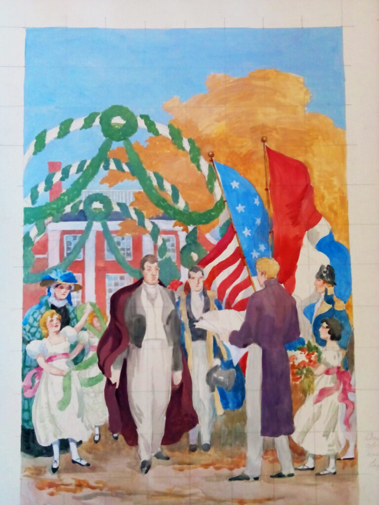 That is true, Hoffman says, even of people currently living in roughly 60 cities across the country named Lafayette, Fayette and Fayettesville. All were dedicated to our esteemed “National Guest”, as Gen. Lafayette was known during his American tour. Indeed, Lafayette became so emotionally connected to the United States that he took dirt from the excavation of the Bunker Hill Monument in Massachusetts and shipped it to France so he could be buried in American soil. America, in response, became emotionally connected to him.