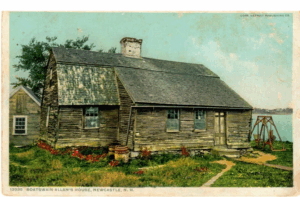 Souvenir postcards of New Castle typically showed the hotel, the lighthouse, the fort, the toll bridge and the ruins of the old Walbach Tower. Another popular card showed a battered, weather-beaten, Colonial cape labeled the “Bos’n” or “Boatswain” Allan House. Some card captions note the house was built in 1734. Others claim that Allan (or Allen) sailed with John Paul Jones aboard the frigate Ranger in the American Revolution. The connection makes sense. The Ranger was built just across the river at what is now Badger’s Island. Jones certainly boarded in Portsmouth and sailed the Ranger to England in 1777.