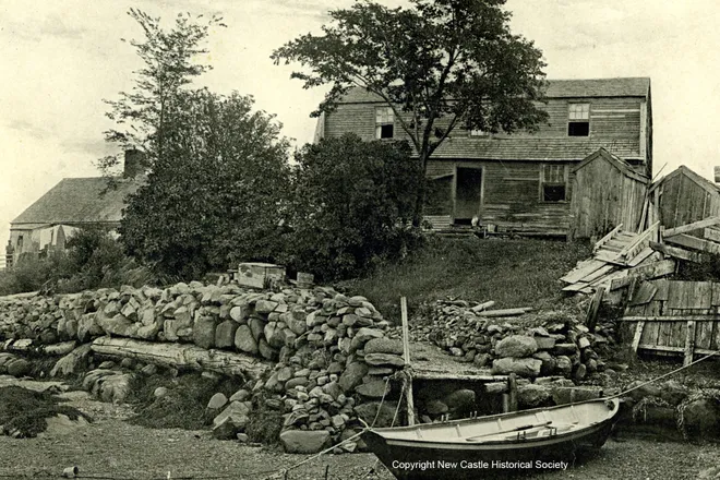How the two characters got confused is not yet known. And that sounds like a fascinating assignment for yours truly. I just happen to own about 100 biographies of John Paul Jones, and someday, I would love to dig into this myth. Cerny notes that an early photograph in the historical society collection shows the ramshackle cottage in the Upper Cove before it was torn down in 1929. It indicates, he says, just how poor the town of New Castle was in the 19th and into the early 20th centuries. The quaint cottage in the postcard I just bought on eBay lives on. It may not tell the truth, but it satisfies the romantic image of New England as a charming and historic vacation site, still popular with tourists today.