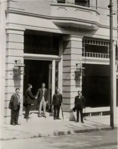 Which brings us to today’s photograph from the summer of 1905. When they were not sitting around the conference table at the Portsmouth Naval Shipyard, or hanging out at the Wentworth by the Sea Hotel, the delegates had a lot of downtime. Many of the foreign newsmen were housed at either the Rockingham or the Kearsarge Hotel adjacent to The Music Hall. The new YMCA building became a favorite hangout for the Japanese, seen here, prior to the historic signing of the Treaty of Portsmouth. Amid tense negotiations with their Russian counterparts, the visiting Japanese and reporters could be seen playing billiards at the YMCA. The renovated building is now home to Jimmy’s Jazz and Blues Club.
