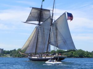 I missed the launch of the $3 million Privateer Lynx in Rockport, Maine in October 2001. It was an incredible event, I hear, with thousands of cheering spectators. I interviewed people who were on the scene for my book, America’s Privateer: Lynx and the War of 1812. Ten years after the book appeared, I got a call–the Lynx was back in town.
