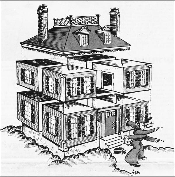 Most features were accompanied with an original illustration by artist Reggie Logan or a clever photograph by Ralph Morang. I’d toss out a topic–the parking crisis, nuclear power, or women’s rights–and the artwork would magically appear. For a story on the selling of the local hospital, Ralph built a Lego model and photographed it. He might create a tabletop clay figure or do some darkroom magic long before Photoshop. The illustration above was for my 1983 article “Portsmouth is Going Condo.” Reggie could always read my mind.