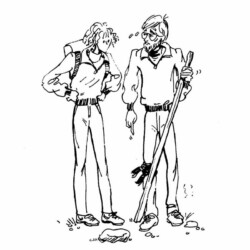 A huge cat was sitting on an unused pool table. It was as bored as we were. Ohimut of sheer whimsy, I picked him/her up and began waltzing around the empty saloon. Long story short, we got kicked out of the Night Owl. When I recalled the event in a local publication, now long gone, the staff cartoonist whipped off this illustration. I shrink to admit, it’s pretty darn accurate.
