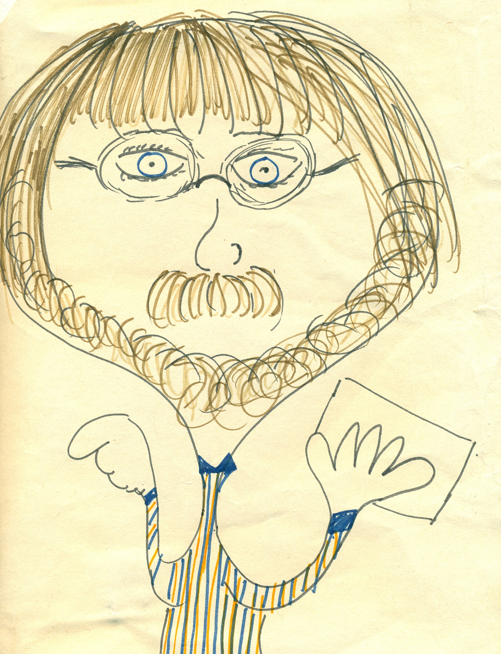 Whether this is a bonus or a curse remains unclear. I’ve been lampooned by professionals, amateurs, and kids from the age of five. A tuft of hair, a pair of glasses, a sketchy beard– that’s all it takes. I’ll collect them in a gallery here, just to prove my point.