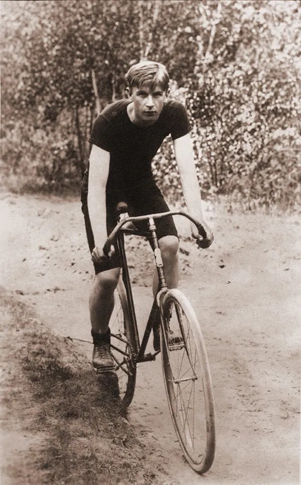 But a rare black-and-white photo of young Alvan Fuller tells a deeper more interesting tale. Taken around 1893, it shows a rugged 15-year-old boy astride an early racing bicycle. Alvan’s haircut and skin-tight shorts are surprisingly modern. We are looking into the eyes, not of an affluent member of the upper crust, but of an athlete. The boy on the bike is determined, but uncertain. He intends to win the race, but he does not know what’s coming around the next corner.