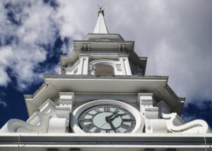 In “The Vane of the North Church,” Brewster uses a simple poetic form. The personified weather vane, set to come down after more than a century atop the highest point in the city, recalls a few historic moments it has seen. In that time, the city had changed from a British colony to a member of the United States. New Hampshire’s original State House had been built in the center of Market Square and removed. Revolutionaries Washington, Jones, Langdon, and a series of famous North Church ministers had come and gone. Ben Franklin had installed his famous lightning rod on the Warner House. The “heathens” on the Isles of Shoals had been tamed by Rev. Tucke. Brewster even references the voyage of Capt. James Cook, whose famous ship HM Endeavour, a reproduction of which, visited the Port City in 1998. In recent decades, the aging North Church steeple has been repaired for $1.5 million, much of it raised by public and corporate donations. –JDR