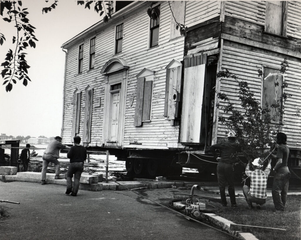 Portsmouth has torn down a ton of beautiful old homes in the name of progress. But it has also moved many to safer locations. Case in point, the Joseph Whipple House still stands on Middle Street, the Oracle House was moved from Haymarket Square to Marcy Street, and the Joshua Wentworth House was shipped by barge from the North End to the South End. Stoodley’s Tavern, the Daniel Webster House, and Gov. Goodwin’s mansion are alive and well at Strawbery Banke Museum.