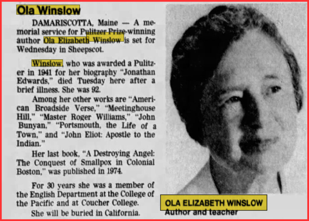 This is by far the best history of our little city for children published in the 20th century. The dust jacket of my copy, bought at an online auction, is tattered and worn. Driven, typically, from a patriotic colonial point of view, the author still managed to create an accurate overview beginning with the first commercial explorer, Martin Pring in 1603 through the American Revolution. Ola Elizabeth Winslow (1885-1977) was a Pulitzer Prize-winning historian with a PhD working with a major publisher. Born in Missouri, educated at Stanford, a professor at Wellesley College, she was a Boston Athenaeum proprietor until her death in Maine.