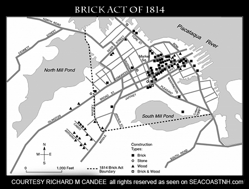 KEY SOURCE: Richard M. Candee, “Social Conflict and Urban Rebuilding: The Portsmouth, New Hampshire Brick Act of 1814,” Winterhur Portfolio, vol. 32, No 2 &3, (Summer / Autumn 1997), 119-148. To see what Portsmouth really used to look like, read Building Portsmouth by Richard Candee.