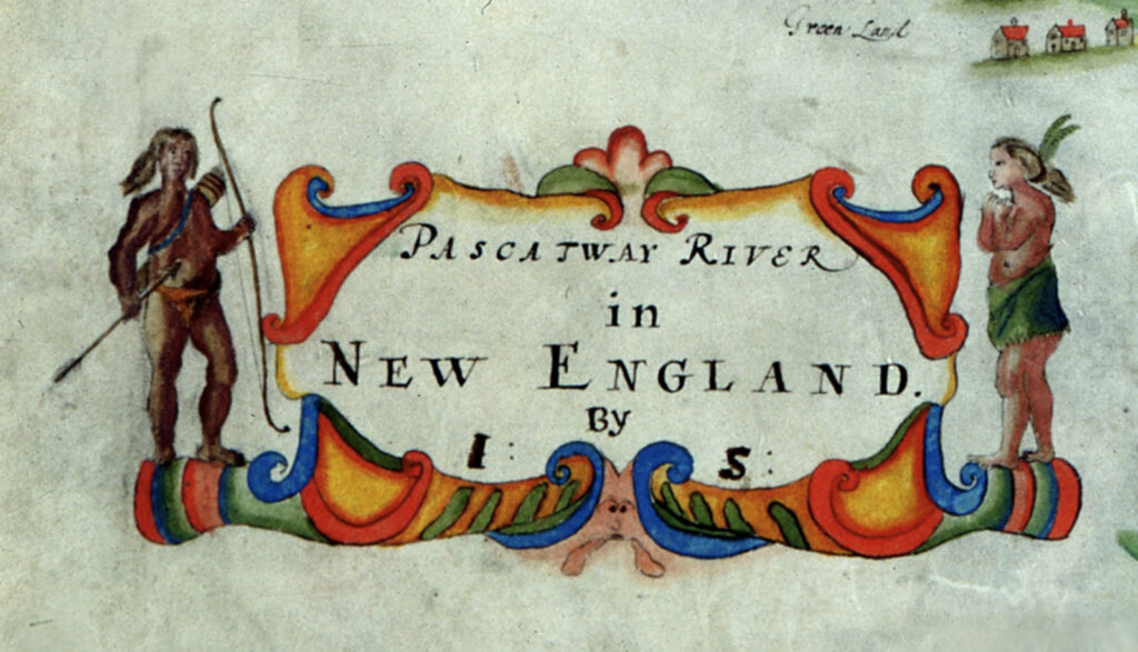 Title detail from a 1690-era map of the Piscataqua River region. (Author Collection)