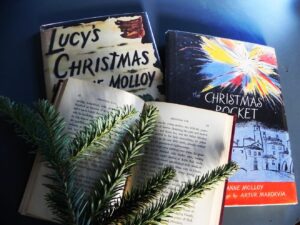 At least two of the 22 children’s books by Anne Molloy (1907-1999) evoke the holiday spirit. Married to a teacher at Phillips Exeter Academy, the mother of two, Molloy wrote her books in longhand, sitting on a sofa with her pages backed against a sturdy checkerboard. She then transcribed each manuscript on her husband’s Underwood typewriter.