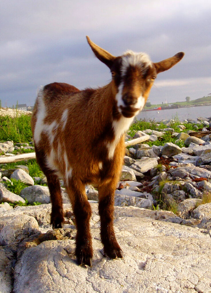 The writings of Celia Thaxter chronicle the shifting balance of the island ecosystem. Among her catalog of birds, sea mosses, fish, vegetables and flowers are tales of domestic animals. Her first vision of the Isles, for example, takes place on tiny White Island, where her father Thomas was lighthouse keeper. Even at age five, she later wrote, Celia spotted two goats in the darkness watching their boat approaching. Her dun red cow grazed on Seavey when the waters ebbed and wandered back to White Island before each high tide. Celia’s brother Oscar Laighton recalled flocks of sheep among his earliest memories in his own book Ninety Years at the Isles of Shoals (1929).