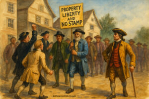 Some government appointments are just not worth the hassle. George Meserve had not gotten off the boat from England early in September 1765 when the bad news arrived. The citizens of Portsmouth sent a message to him aboard ship in Boston. If Meserve didn’t resign his new government job, then he could forget about coming home. People in Portsmouth, like people across the colonies, were enraged by the Stamp Act.