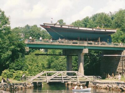 The 80-ton, $3 million ship inched toward the Goose River Bridge, which had collapsed in 1946