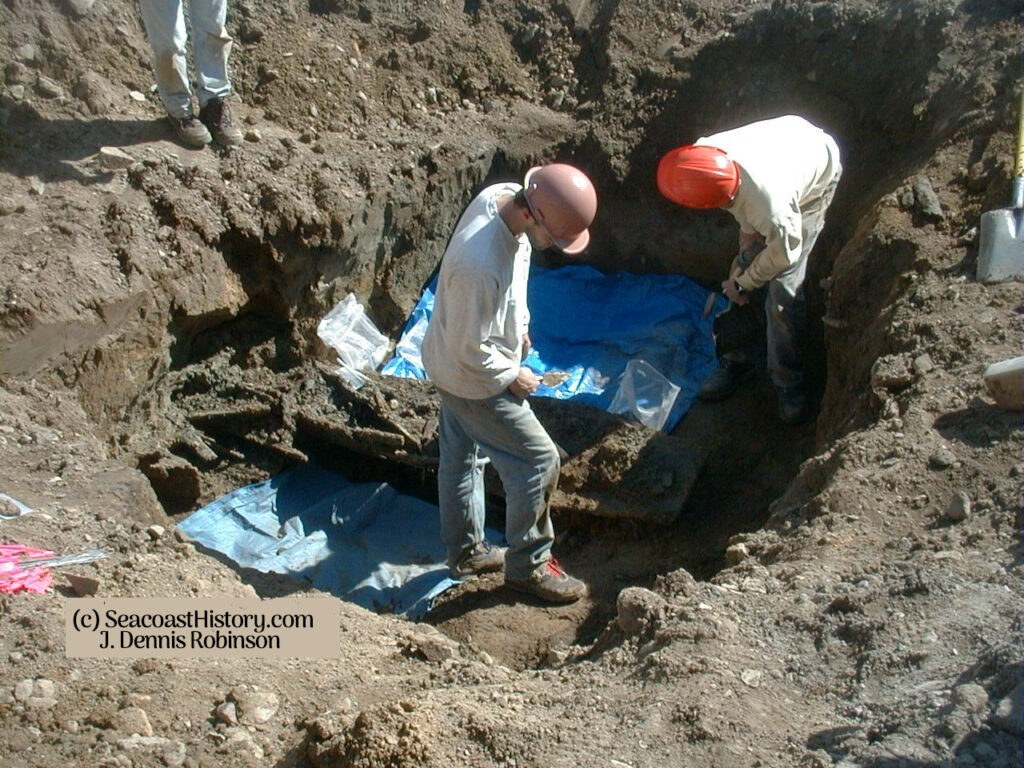 –We will be hearing a lot more about the coffins discovered beneath the streets of Portsmouth this week. The rotting 18th-century wooden caskets appear to validate a long-held claim that our forebears built the growing city on top of an old “Negro Burying Ground” in the early 1800s. Months before the grave discovery, black historian Valerie Cunningham had been invited to meet with city workers preparing to excavate a sewer line near the proposed burial grounds. Although no human remains were found during previous city pipe work at the corner of Court and Chestnut Streets downtown, contingency plans were devised. Archeologists hired by the city then tested the region to a depth of two or three feet. When nothing turned up, the digging began. When workers were required to dig deeper a few yards off the planned grid, their backhoe hit something made of wood.
