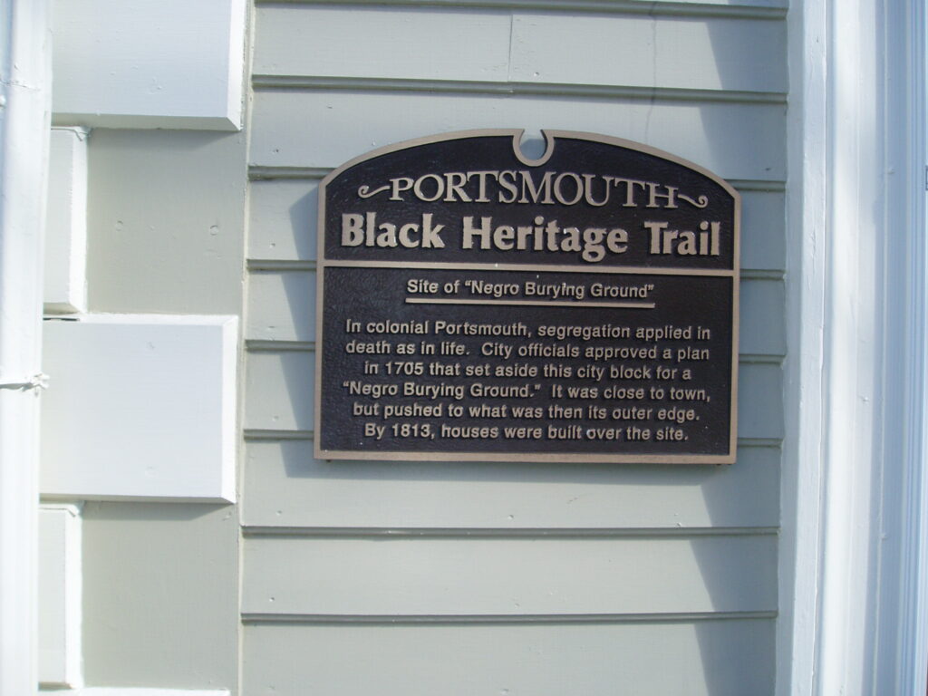 But before that lengthy process begins, here are some facts to consider. According to Valerie’s research, Portsmouth’s slave population was reported to be 52 in 1727. By 1767 that number had grown to 187, and does not include a population of free blacks and “mulattos”. It would not include visiting black sailors, of which there were many in the Age of Sail, or blacks accompanying white Portsmouth visitors, or African-Americans living in neighboring towns.If the “Negro Buryingl Ground” was established before 1705 and continued in use for as much as a century, is it not possible that a significant number of grave sites still remain buried in the area? Mark Sammons notes that Prince Whipple, enslaved by Portsmouth signer of the Declaration of Independence William Whipple is buried in North Cemetery, largely populated by whites. That may indicate that the Court Street site was out of use by the end of the 1700s, or it may just indicate that Prince and a few other blacks were afforded a special honor due to their record of service. Slaves of the Langdon family were reportedly buried in obscurity on the family farm off Lafayette Road. But still, he agrees, the total population of the Court Street cemetery, may have been considerable.