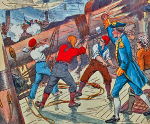 Drawing his pistols from his belt and grasping one in each hand, Paul Jones suddenly kicked open the door and entered the robbers’ rendezvous. There were three men there and they were gallows birds, every mother’s son of them, as ripe for murder as for drinking a glass of grog.