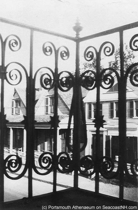 But there is, as yet, no definitive proof that this balcony is the real deal. The house pictured, the Thomas Beck House, survives on “The Hill” downtown, but the balcony is missing – possibly stolen decades ago during the urban renewal in the North End. Does it still exist? Sources have sent evidence that the balcony pictured here is currently privately owned. (Photos copyright Portsmouth Athenaeum, all rights reserved. )