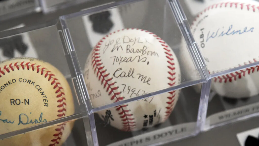 “For example, one ball I have is signed by Zack Clayton,” Caliro says. “He played for the Negro League, he played for the Harlem Globetrotters, and he refereed the ‘Rumble in the Jungle’ fight between George Foreman and Muhammad Ali.”